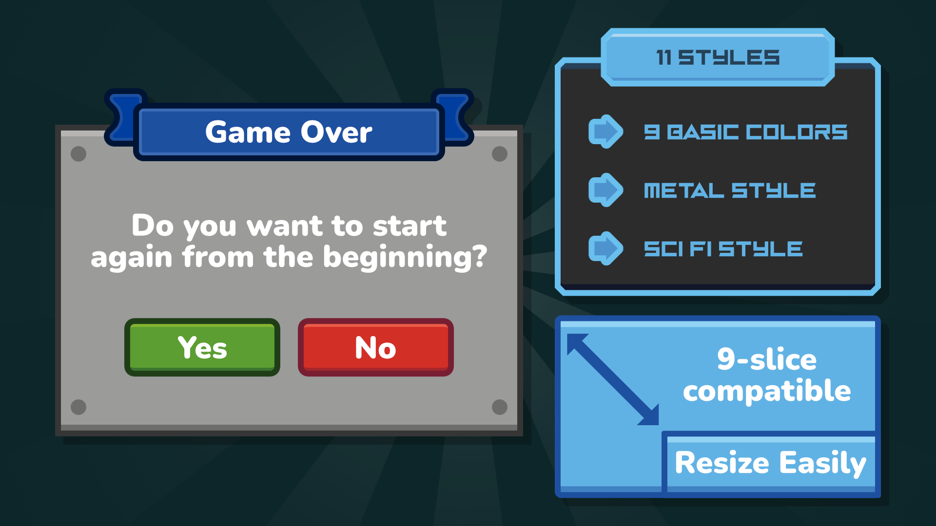 High quality cartoon UI graphics for use in your games. This pack features 572 assets across 11 styles which can be mixed and matched to create the perfect user interface for your game!